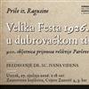 Osim uobičajenih elemenata Feste te je godine crkvene svečanosti vodio papinski nuncij Ermenegildo Pellegrinetti kao izaslanik pape Pija XI, dok je državnu vladu iz Beograda predstavljao ministar prosvjete i vođa HSS-a Stjepan Radić. Već je njihovo sudjelovanje dalo na značaju ove Feste, a svi su se sudionici gotovo natjecali da ona te godine bude što svečanija i raskošnija. Među njima se isticala i skupina pjevača pri katedrali koja se upravo tada i službeno organizirala u jedan od najjačih zborova ne samo u Dubrovniku, već i šire. Naravno, to sve nije moglo proći nezapaženo u tadašnjem lokalnom i pokrajinskom tisku koji je pažljivo pratio odvijanje Feste i donosio podatke koji danas čine dragocjen izvor za poznavanje duha vremena. Po čemu je ova proslava sv. Vlaha prije jednoga stoljeća bila doista posebna, saznajte na predavanju koje je pripremio dr. sc. Ivan Viđen, povjesničar umjetnosti.