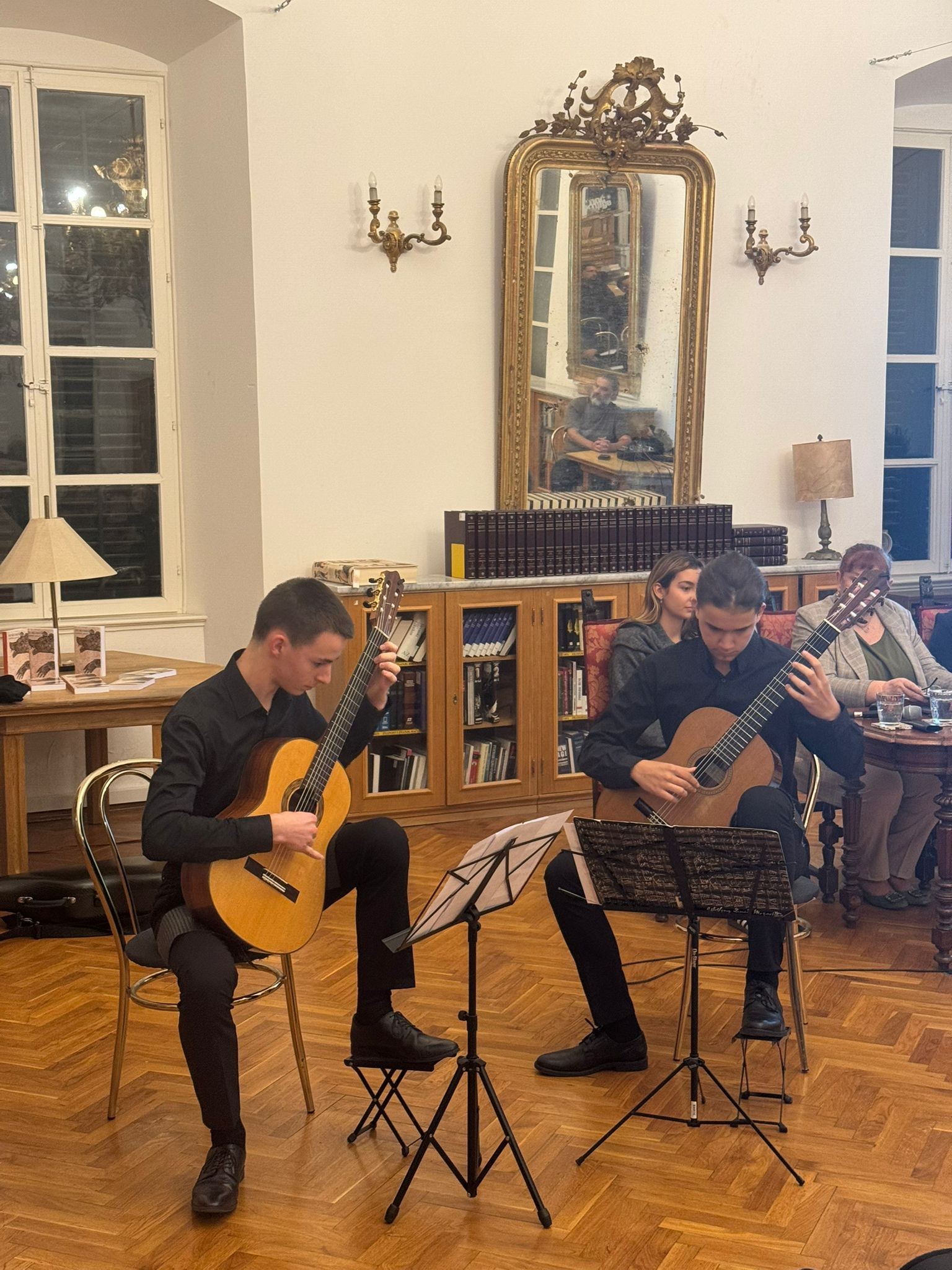 Događaj je glazbeno uveličao gitarski duo Umjetničke škole Luke Sorkočevića Daris Omerčahić i Robert Prusina pod mentorstvom prof. Pera Škobelja, a stihove iz knjige čitala je učenica Biskupijske klasične gimnazije Ruđer Bošković s pravom javnosti, Dora Vicelić.