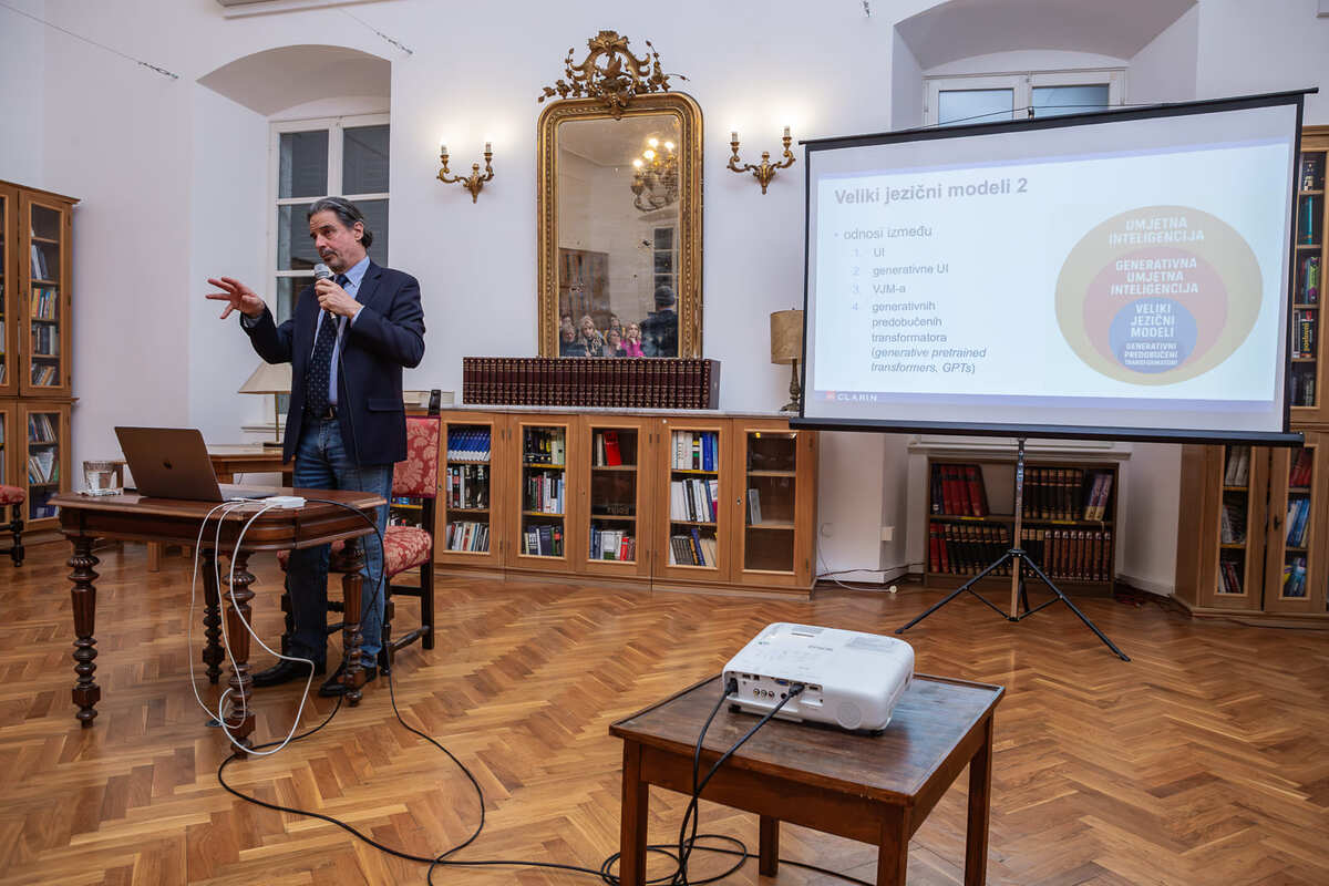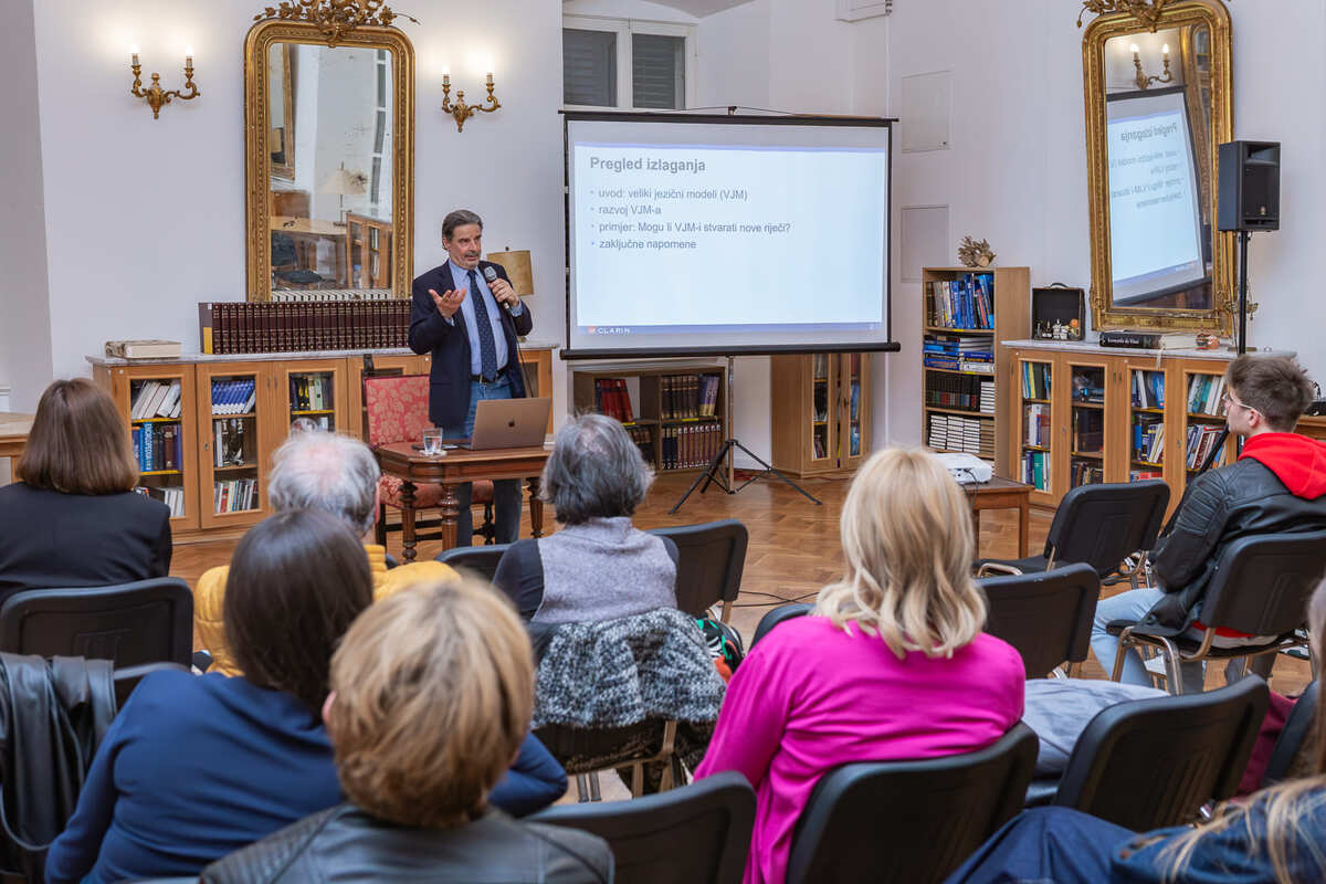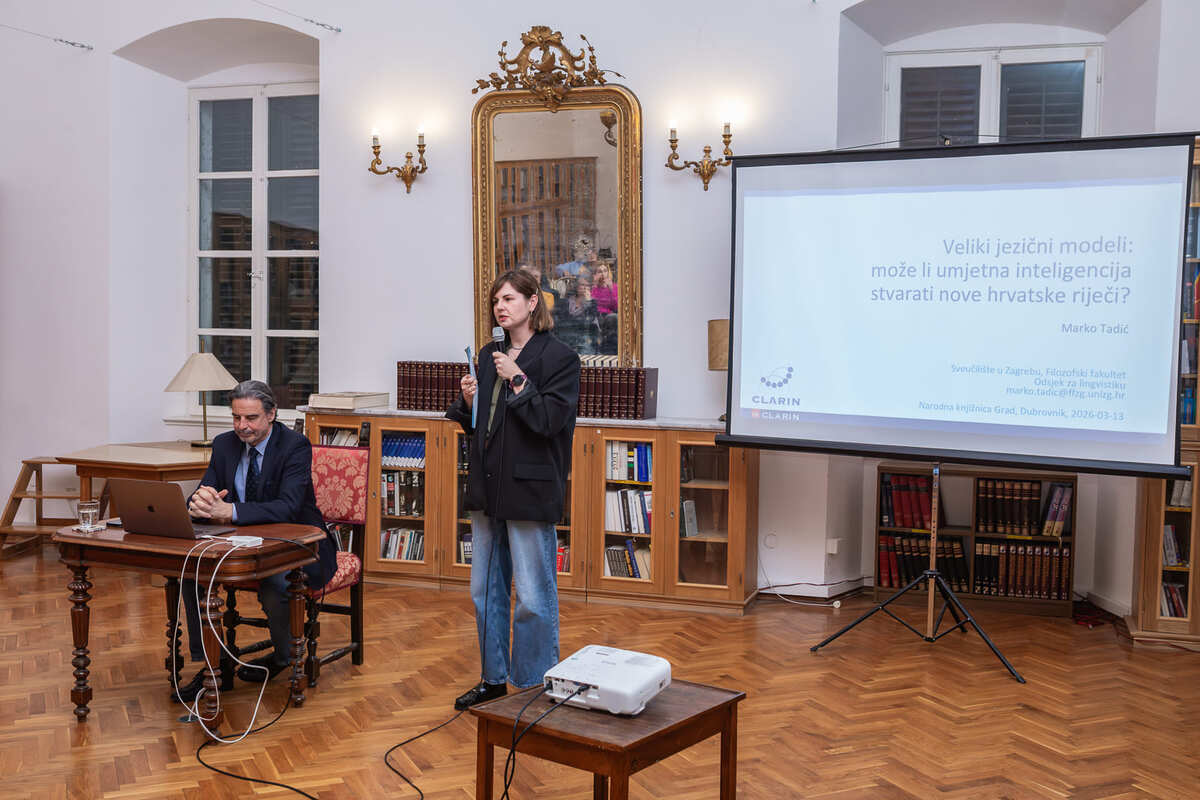 U sklopu obilježavanja Mjeseca hrvatskoga jezika 13. ožujka u Dubrovačkim knjižnicama održano je predavanje o velikim jezičnim modelima i umjetnoj inteligenciji. O temi koja sve snažnije utječe na način na koji razumijemo i koristimo jezik govorio je istaknuti hrvatski računalni i korpusni lingvist Marko Tadić, profesor koji se već desetljećima bavi računalnom obradom hrvatskoga jezika. Na predavanju je predstavio osnovna načela razvoja velikih jezičnih modela te rezultate vlastitih istraživanja o njihovu utjecaju na hrvatski jezik.