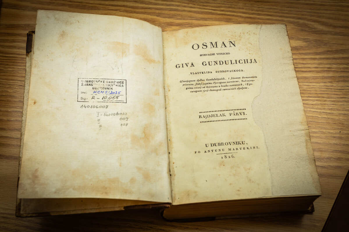 Večer je u ime Dubrovačkih knjižnica otvorila Paula Raguž, predstavivši publici dragocjene primjerke iz Znanstvene knjižnice, zbirke „Ragusina“ – originalno izdanje iz tiskare Antuna Martecchinija (1826. godine), kao i raritetni prijepis „Osmana“ iz 17./18. stoljeća (rukopis Alberti-Aranza), koji je knjižnici poklonio ban Nikola Šubašić 1941. godine prilikom svečanog otvaranja tadašnje „Dubrovačke biblioteke“ na Kandeloru 1941.