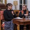 Tijekom razgovora naglašena je važnost povjerenja između autorice i urednika u procesu oblikovanja intimne ispovijesti. Govorilo se o teškom suočavanju s očevim iskustvima, ali i o univerzalnim temama poput izdržljivosti, dostojanstva i ljudske potrebe za preživljavanjem. Posebno je odjeknula misao da je Vladimir Grgić, unatoč namjeri sustava da ga slomi, na Golom otoku „izučio zanat“ – po povratku je postao kamenoklesar i izgradio život za svoju obitelj. Matejčić je naglasila: „Plava bilježnica govori o tome kako sustav oblikuje ljude i kako oni, ponekad baš zato što su vjerni i odani, završe kao žrtve ideologije.“ Autorica je dodatno istaknula da knjiga ne traži krivce, već pokušava razumjeti mehanizme sustava i posljedice koje oni ostavljaju na pojedinca i obitelj. Kroz vlastite priče propituje koliko je očevo iskustvo oblikovalo njezin identitet i vrijednosti koje je naslijedila.