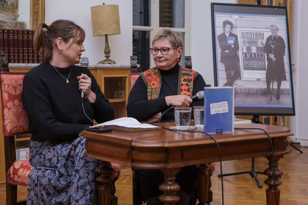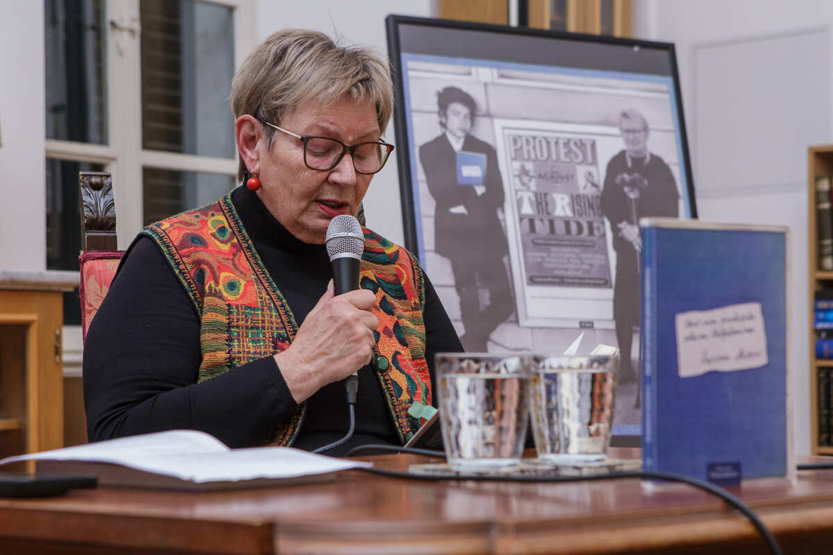 Predstavljanje je dodatno obogaćeno čitanjem ulomaka iz knjige, koji su publici približili snagu i poetiku djela. Večer je zaključena osobnijim tonom kroz priču o autoričinoj dugogodišnjoj inspiraciji glazbom Boba Dylana. U prostoru su bili izloženi plakati inspirirani Dylanovim vizualom iz 1960-ih, koje su autoričini prijatelji reinterpretirali kao duhovitu posvetu – na plakatima su se našli autorica i Dylan, pa čak i njezina knjiga u njegovim rukama. Time je simbolično povezana autoričina osobna priča s umjetnikom kojeg doživljava kao trajni uzor društvene osviještenosti i budnosti. Predstavljanje je potvrdilo važnost književnosti kao prostora suočavanja s prošlošću te očuvanja osobnih i kolektivnih sjećanja.