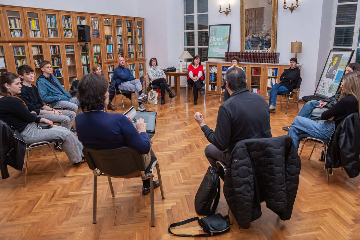 Središnji dio večeri bio je posvećen analizi romana „Stranac“, koji je potaknuo duboku i slojevitu raspravu o temeljnim pitanjima ljudskog postojanja. Sudionici su posebno istaknuli specifičnu percepciju glavnog lika Mersaulta, njegovu usmjerenost na osjetilni svijet te gotovo potpuno odsustvo emocionalne refleksije. Upravo ta distanca otvorila je pitanja o prirodi morala, slobodne volje i društvenih normi.