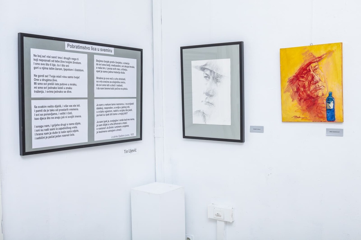 Polazište izložbe inspirirano je idejom „𝐏𝐨𝐛𝐫𝐚𝐭𝐢𝐦𝐬𝐭𝐯𝐚 𝐥𝐢𝐜𝐚 𝐮 𝐬𝐯𝐞𝐌𝐈𝐑𝐮“, kojom Ujević otvara prostor univerzalne povezanosti, dok Tesla taj koncept proširuje u smjeru sveopće energije i ritma prirode. Kroz njihov imaginarij izložba gradi vizualni dijalog između poezije i znanosti, materije i duha, pojedinačnog i univerzalnog.