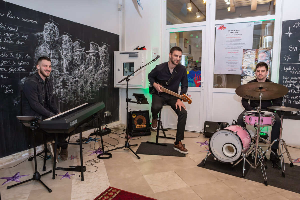 Nakon otvorenja izložbe, održano prigodno druženje uz glazbenu pratnju sastava 𝐆𝐑𝐄𝐄𝐍 𝐓𝐄𝐀 𝐂𝐎.