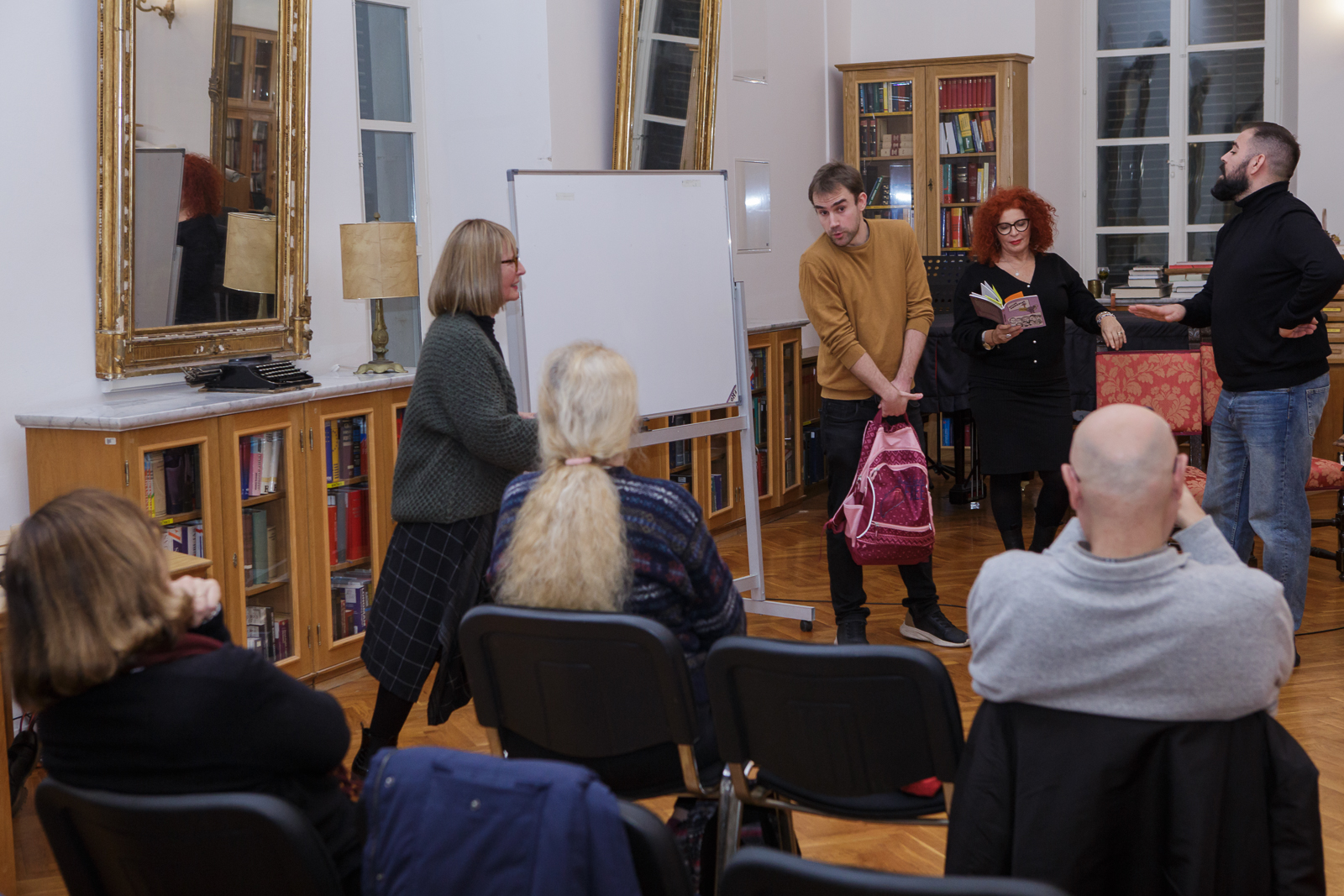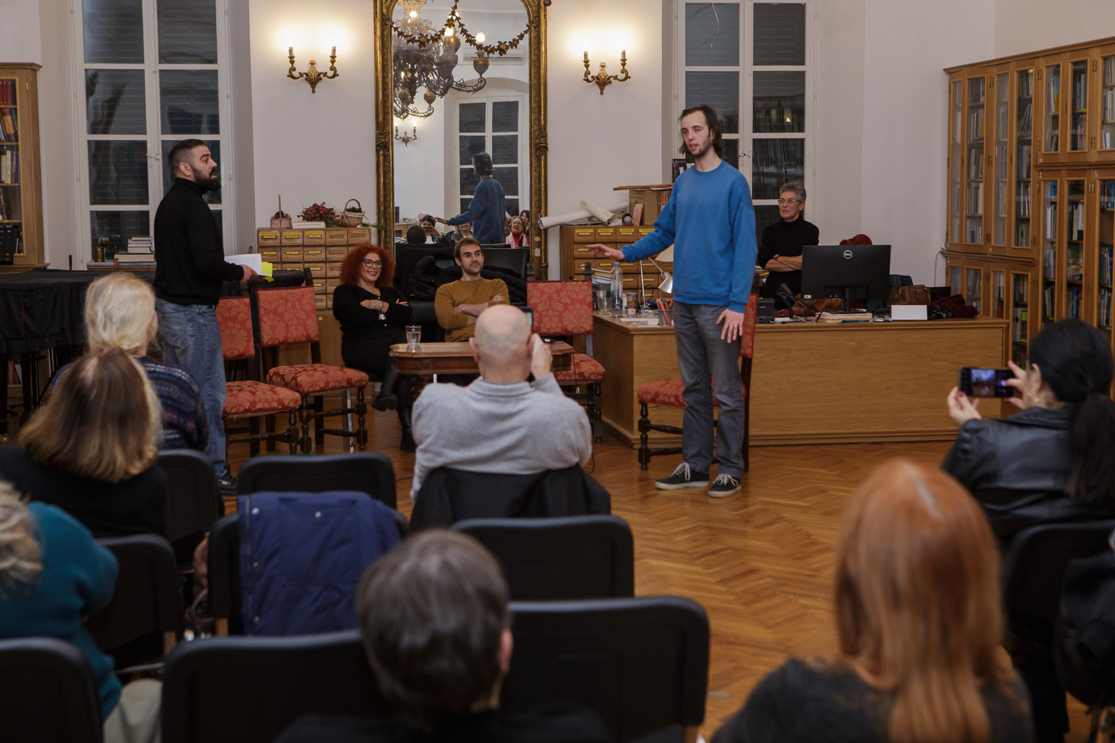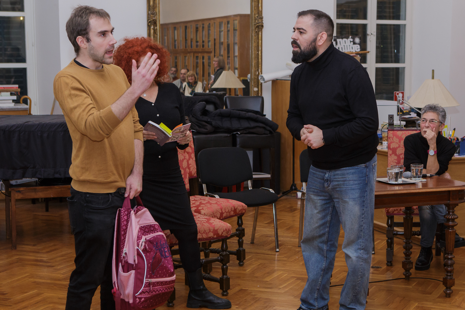 Prisutni članovi glumačke družine izveli su ulomke iz prve komedije i ponovno nasmijali okupljene, dok su fragmente iz druge komedije čitali – što je ujedno bilo i njezino prvo javno čitanje. Kroz odabrane prizore, izvedene upravo u prostoru Saloče od zrcala gdje su se održavale i probe, publici je još jednom približeno bogatstvo dubrovačkog jezika i govora.